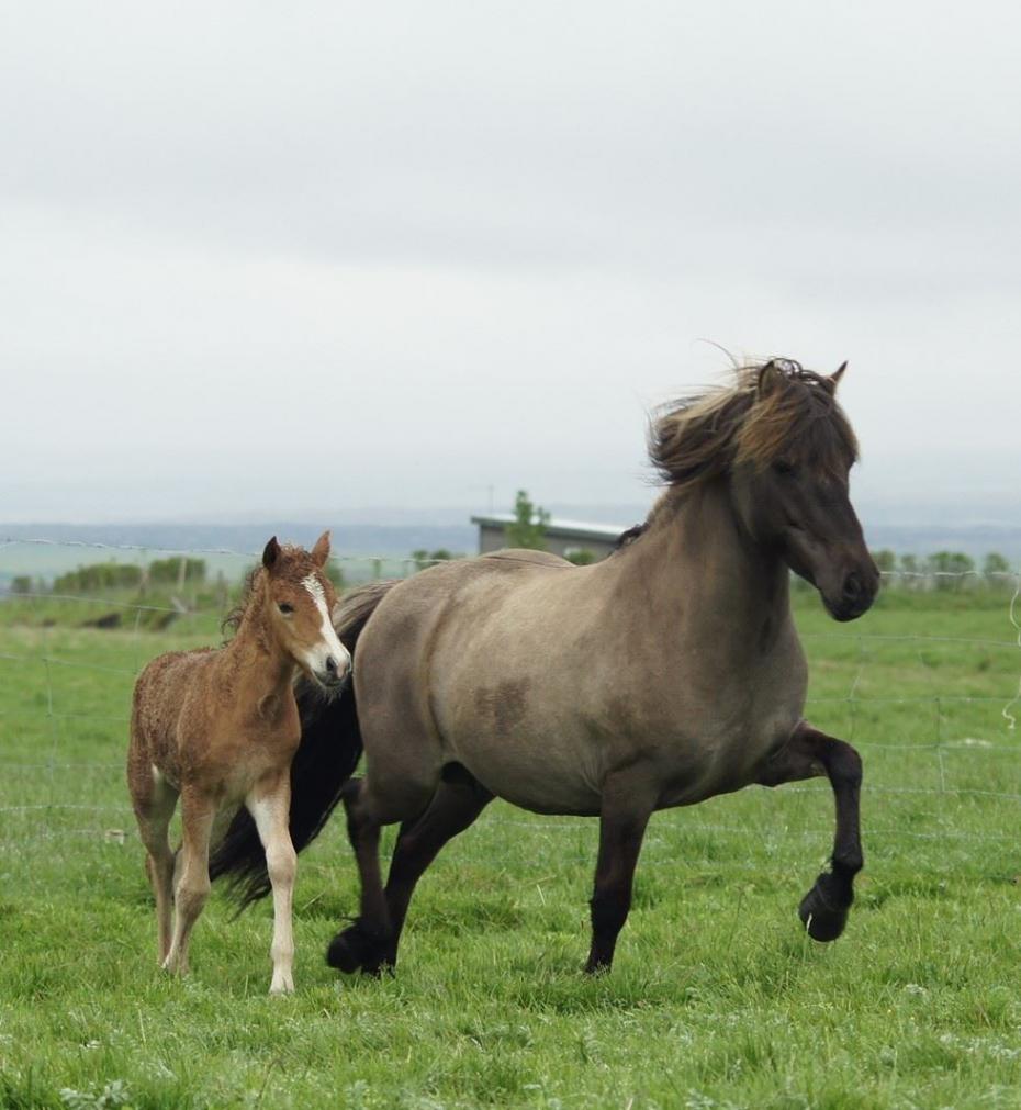 2019 auf Deckweide bei Arður frá Brautarholti; tragend für Mitte Juni 2019